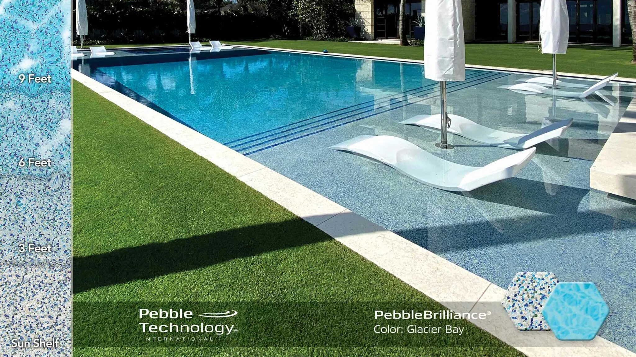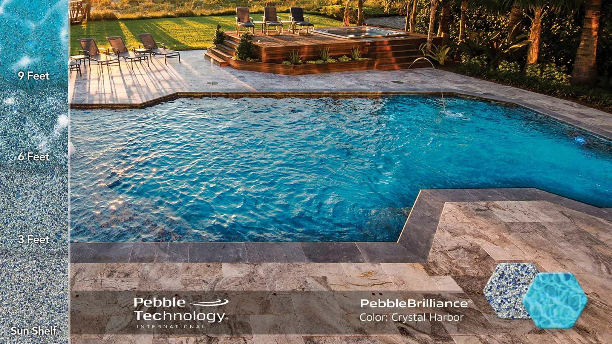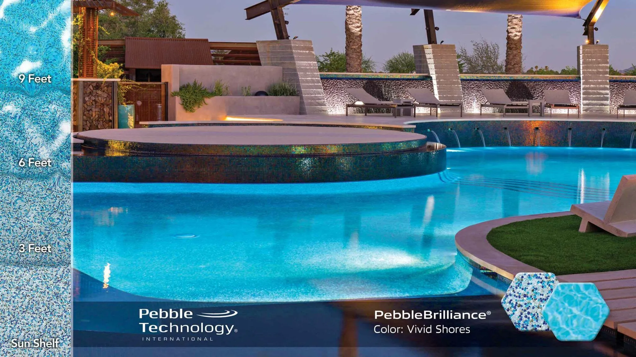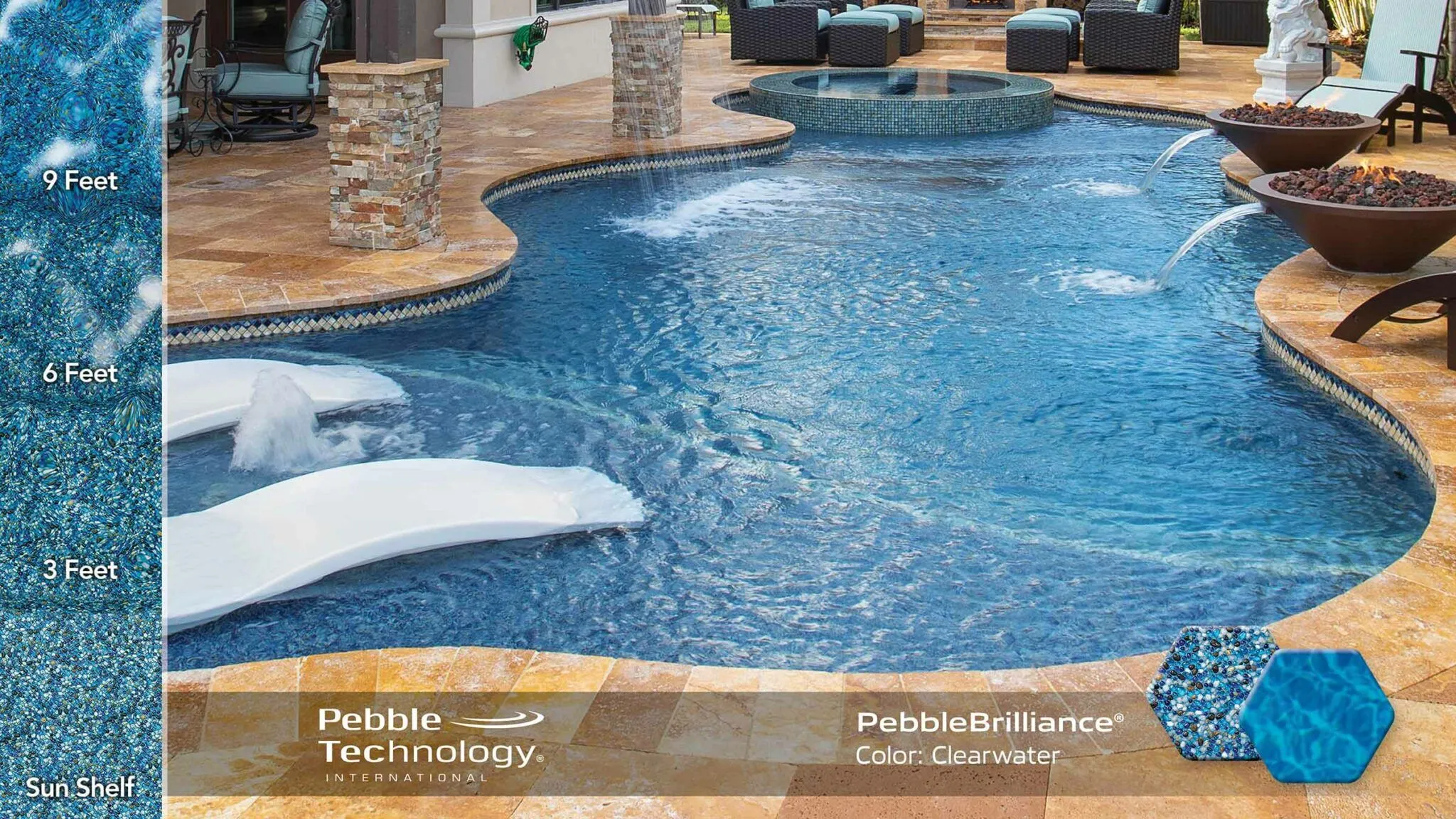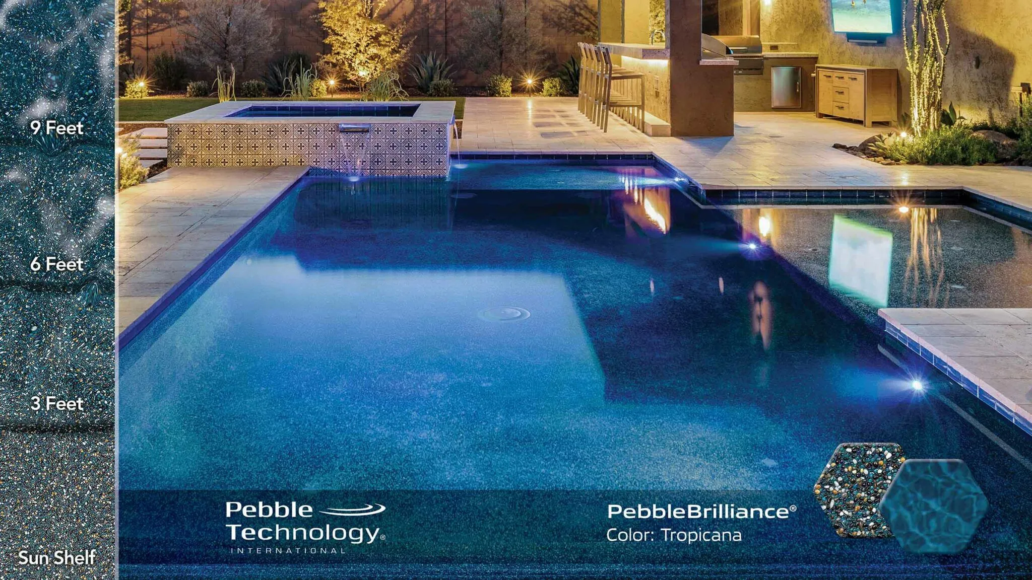 This refined-texture finish features a blend of vibrant glass beads and natural stone aggregate, a combination that imparts stunning beauty. Smooth, imported glass beads give extra foot comfort—as well as an added infusion of sparkle and color brilliance to the water.