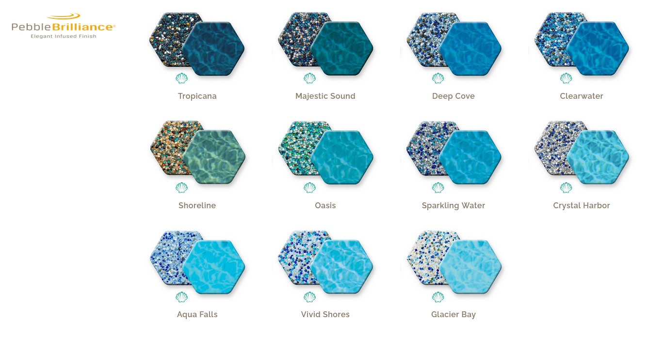 Browse our Pebbletec Pebble Brilliance Pool Color Gallery now and you’ll see exactly how each unique color will look when installed in your pool. Please take note of your favorite finish color so we can discuss that during a phone call or when you are using our custom estimating tool on our website.