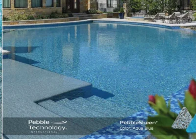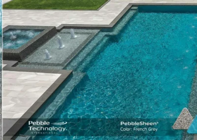 Pebble Sheen® pool finishes, expertly installed by Frontline Pools in Tampa, FL, offer the perfect combination of refined beauty and long-lasting durability. As part of the PebbleTec family, Pebble Sheen features smaller, finely textured pebbles that create a smoother, more polished surface—ideal for homeowners who want the natural look of a pebble finish with a more comfortable feel underfoot. This elegant finish gives your pool water a vibrant, sparkling appearance, with a wide range of stunning color options to match your outdoor aesthetic.