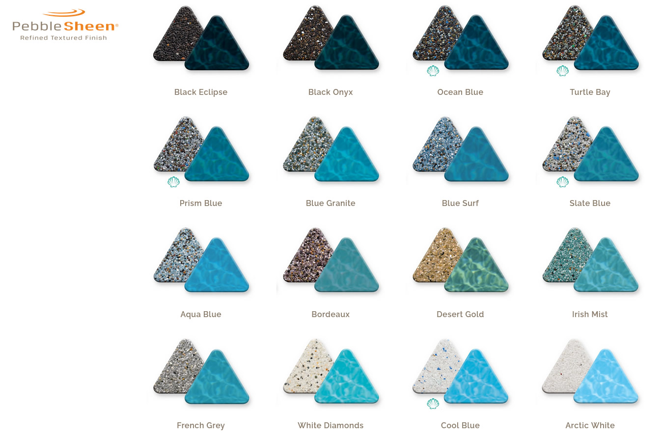 Browse our Pebbletec Pebble Sheen Pool Color Gallery now and you’ll see exactly how each unique color will look when installed in your pool. Please take note of your favorite finish color so we can discuss that during a phone call or when you are using our custom estimating tool on our website.